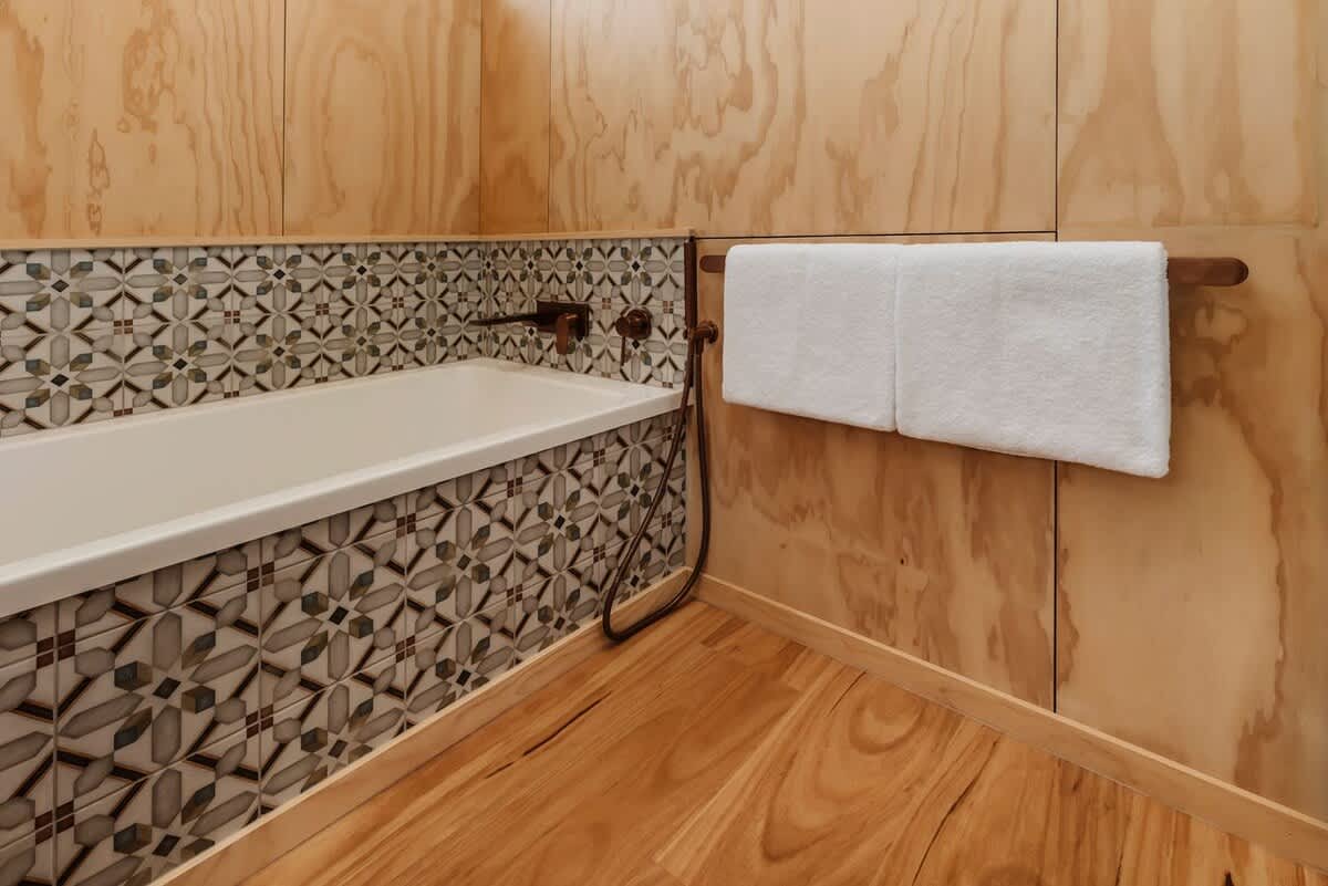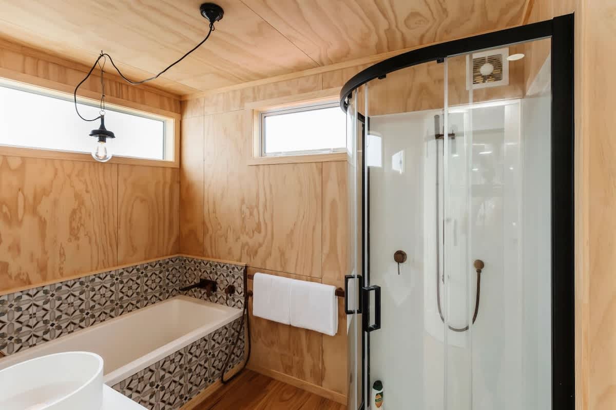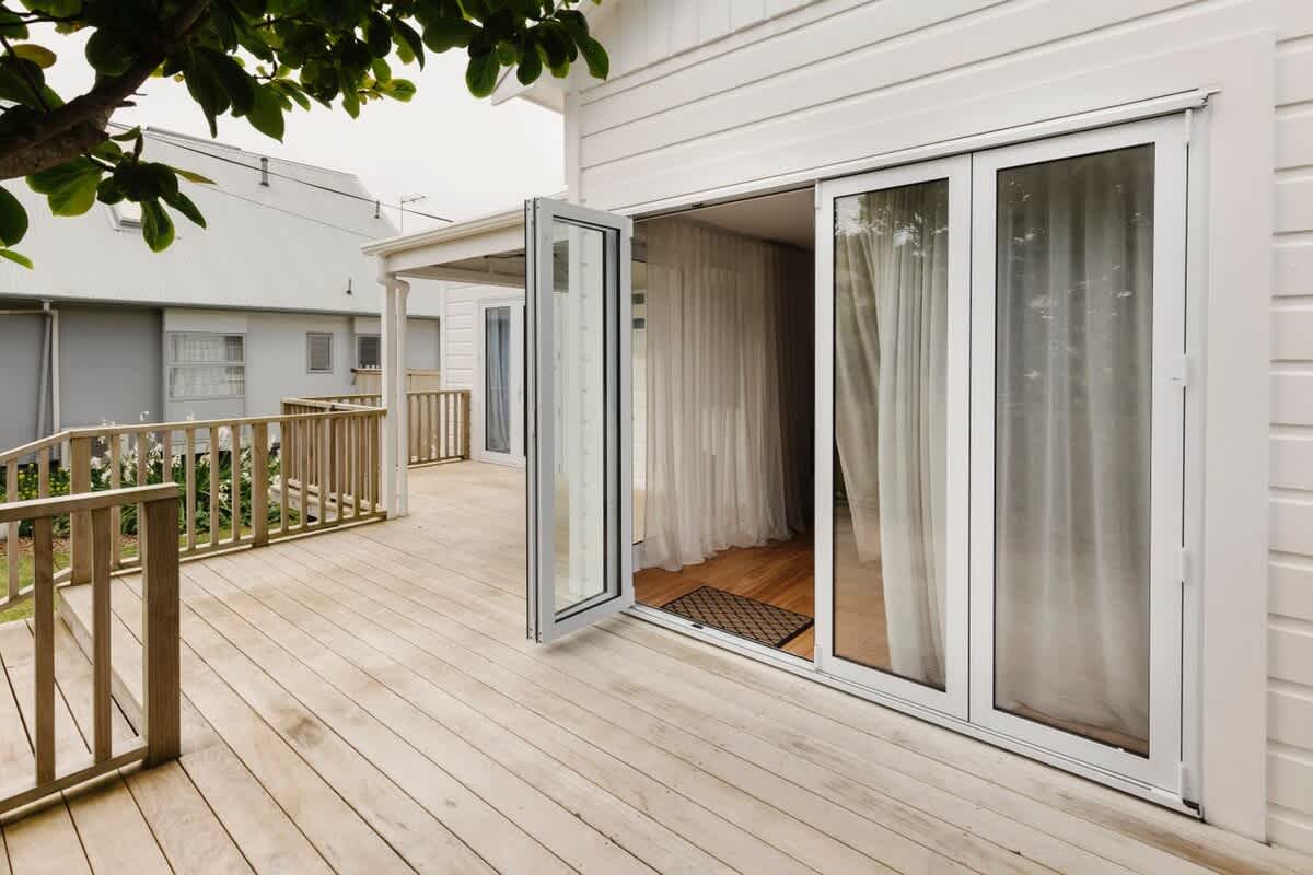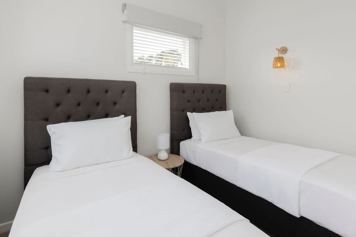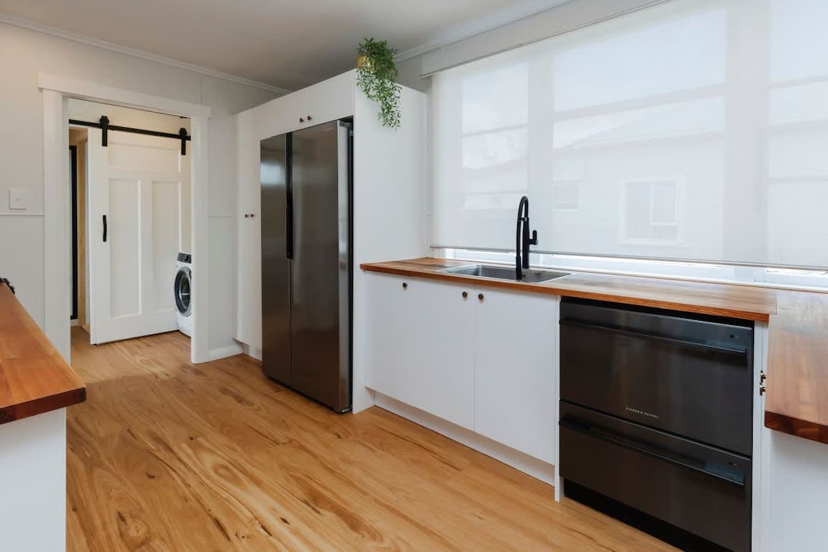 The sleeping arrangements are designed with comfort in mind. The master bedroom features a luxurious king-sized bed, an elegant en-suite, and direct access to the deck. Two additional bedrooms—one with a two singles and one with another single bed, provides ample space for family or friends. These rooms share a modern bathroom with both a bath and a shower and a separate toilet, ensuring convenience and privacy for all guests. Laundry facilities making your stay even more comfortable and hassle-free.