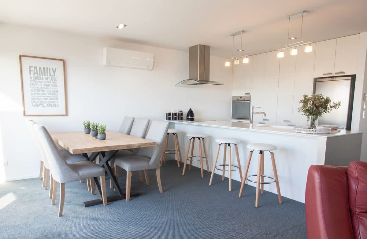 Please note the cleaning fee: All linen & towels are provided by a commercial linen company and are professionally laundered. Properties have been cleaned prior to guests arrival to meet the Ministry of Health commercial cleaning standards. A part end of stay cleaning service is included. This covers the cleaning of bathrooms, mopping and rubbish removal. Guests are required to leave the property in a tidy and clean state all dishes are washed/the dishwasher loaded and turned on prior to departure.